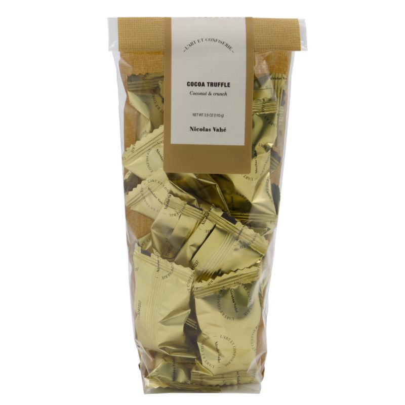 Nicolas Vahés klassische Schokoladentrüffel überraschen mit einem köstlichen Twist aus feinem Kokos und knusprigem Crunch. Die zartschmelzende Textur entfaltet beim Genießen ein intensives Schokoladenaroma, das sich harmonisch mit der sanften Kokosnote verbindet. Ideal als liebevolles Mitbringsel oder als süße Begleitung zu einer Tasse Tee oder Kaffee.