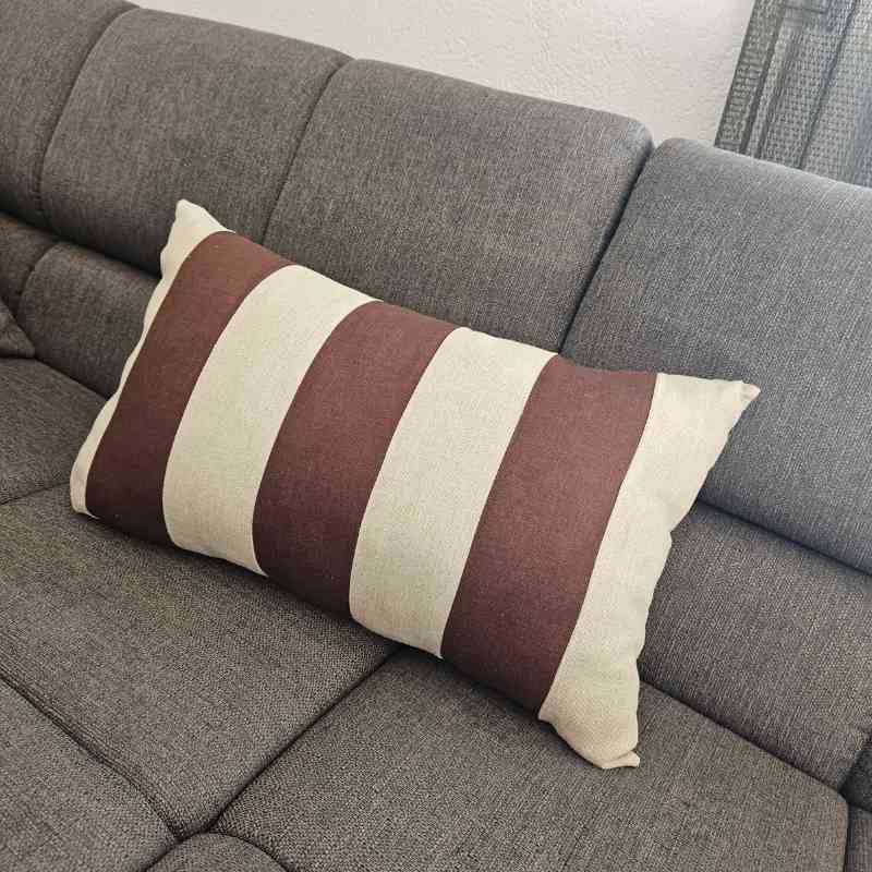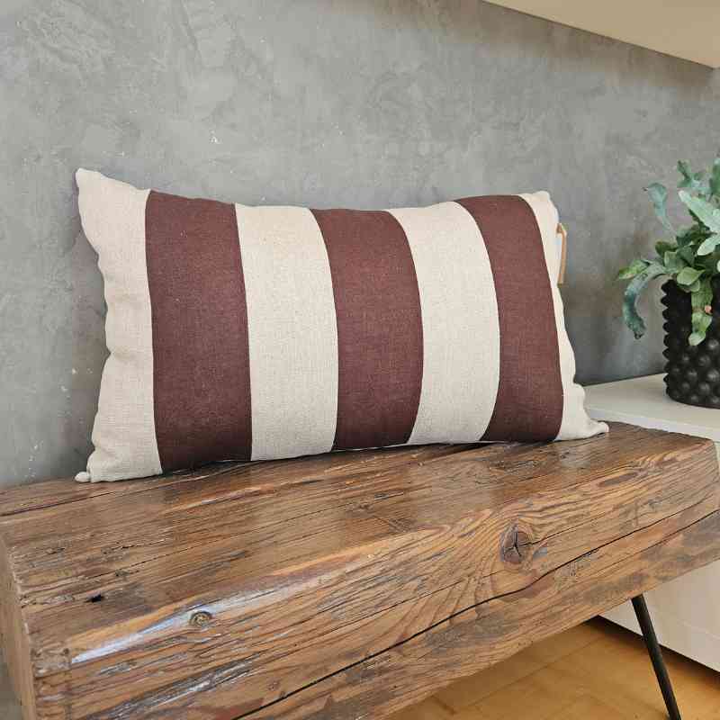 Dieses handgefertigte Kissen aus hochwertigem Leinen bringt sofort mehr Stil, Wärme und Persönlichkeit in jeden Wohnraum. Die breiten, harmonisch angeordneten Streifen auf der Vorderseite setzen einen modernen, natürlichen Akzent und machen das Kissen zu einem echten Blickfang auf Sofa, Sessel oder Lieblingsstuhl. Durch die feine Leinenstruktur entsteht ein zeitloser Look, der sich mühelos in verschiedene Einrichtungsstile einfügt – von skandinavisch bis hin zu boho-inspirierten Wohnkonzepten.
