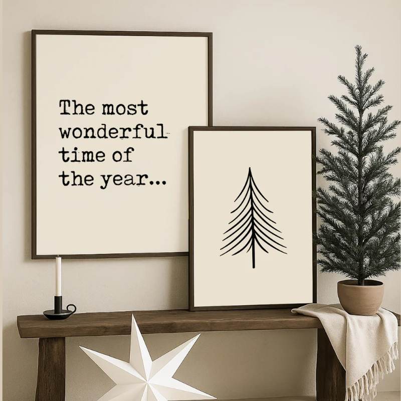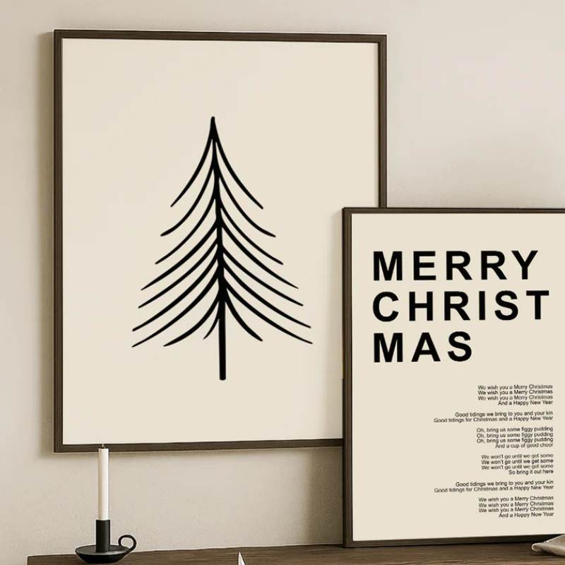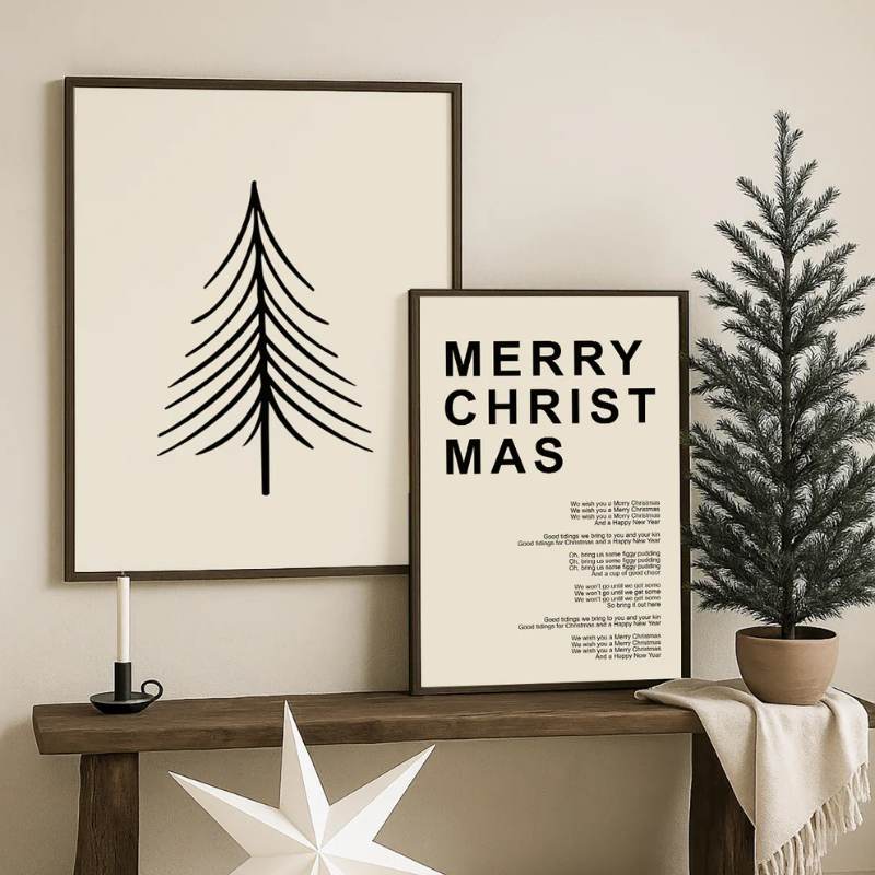 Trendiges Weihnachtsposter mit einem Weihnachtsbaum in kontrastreichen Schwarz-Beige-Tönen – perfekt für eine moderne, stilbewusste Weihnachtsdekoration. Das minimalistische Design im beliebten Scandi Style lässt sich wunderbar mit vielen anderen Postern kombinieren und bringt nordische Eleganz in dein Zuhause.